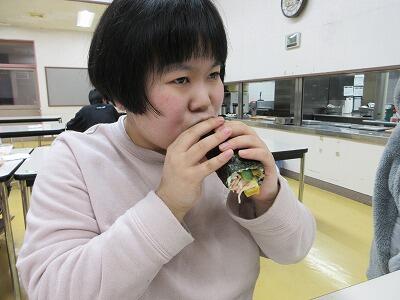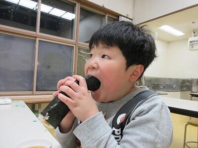 調理員の皆さんが、丹精込めて手作りしてくれる恵方巻きに子どもたちも大喜びです。