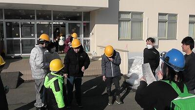 令和8年2月4日(水)、第4回寄宿舎避難訓練を行いました。昨年の2月4日は記録的大雪に見舞われた帯広でしたが、今年は春のような穏やかな天候の中での実施となりました。今回の訓練は、雪道に気をつけながら避難場所に集まり、みんなで移動をすることを目的としていました。目的に反して所々アスファルトが顔を出す天候でしたが、舎内放送にて避難場所を伝えると、ヘルメット、防寒着を着て落ちついて避難することができています。