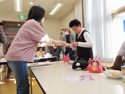 3月に入り、高等部、中学部、小学部の卒業生をそれぞれ見送る中、3月でお別れする舎生への「いってらっしゃいの会」が行われました。当日は和やかな雰囲気の中、職員のマジックショーやジャグリングをみんなで楽しみました。
