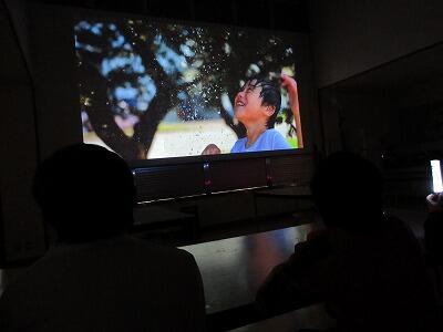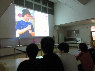 食堂の壁に大きなスクリーンが登場し、子どもたち1人ひとりが主役の臨場感溢れる音と映像が映し出されると、会場は大きな歓声と子どもたちの笑顔に包まれました。