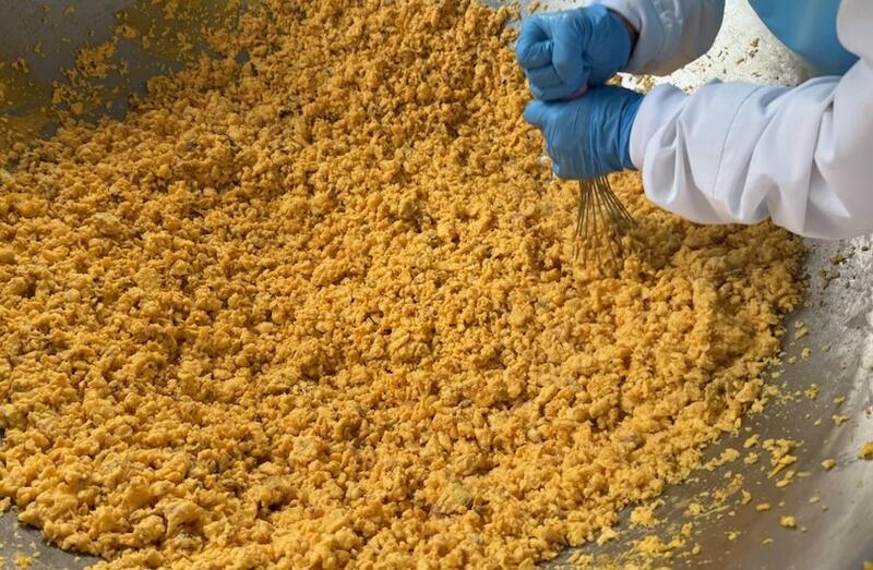 卵は約360個分を大釜で炒り、一生懸命調理していただきました。調理員さんありがとうございます!