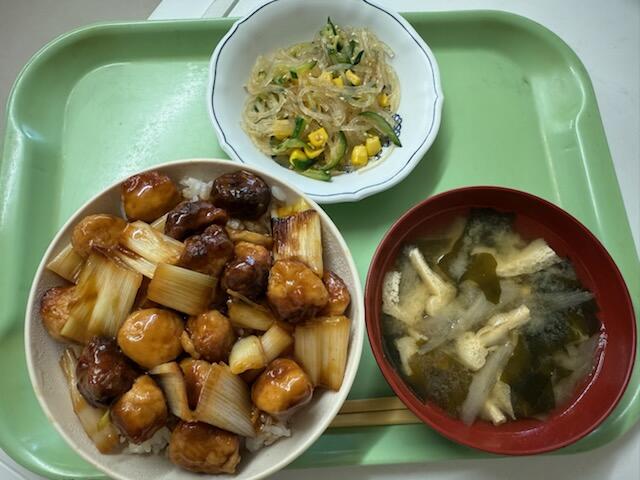 次はつくね丼、ごぼうのみそ汁、春雨サラダです。