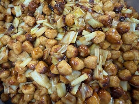 つくねと長ねぎに「焼き目」という調味料を加え・・・照りのあるたれをあえて完成!