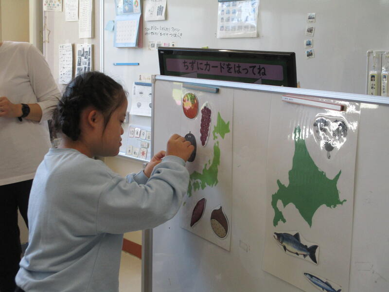 栄養教諭からは食欲の秋をテーマに、①秋においしい食べ物について、②地域で収穫できる秋の食べ物について、③10月の給食献立表から秋の食べ物を探す活動を行いました。