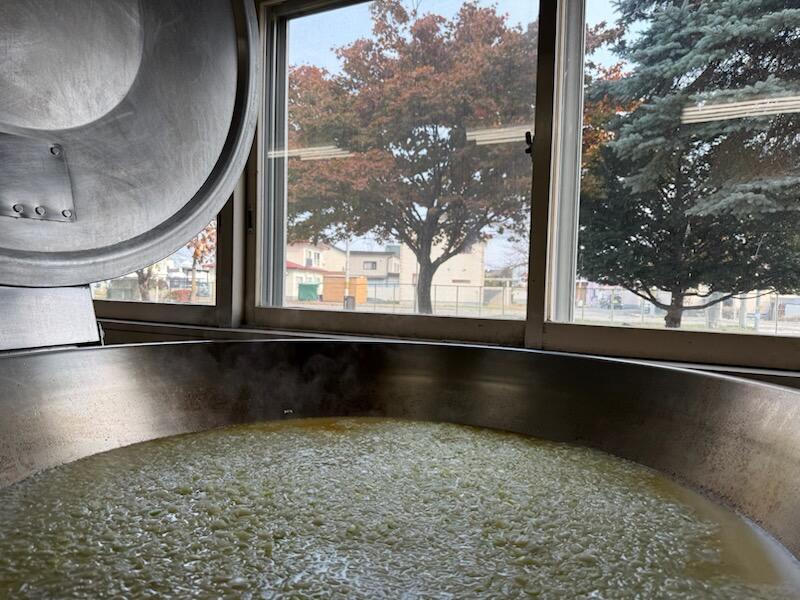 卵は約360個分を大釜で炒り、一生懸命調理していただきました。調理員さんありがとうございます!
